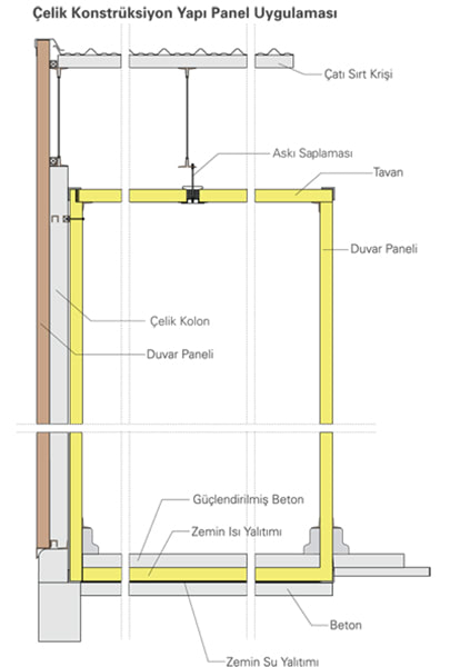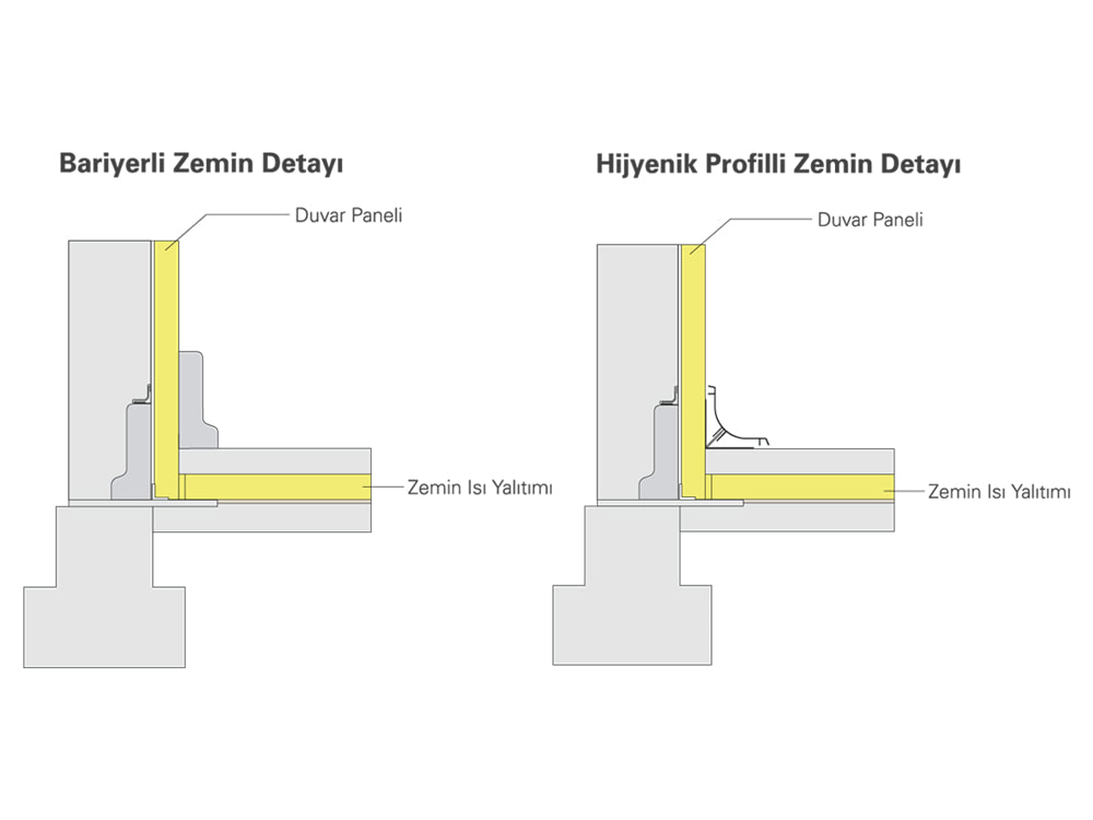 Sandwich panels produced with eccentric lock system can be easily combined thanks to this system. Thanks to the male-female joint detail between the two joint surfaces, a perfect, heat-bridged, leak-proof joint is provided after application.