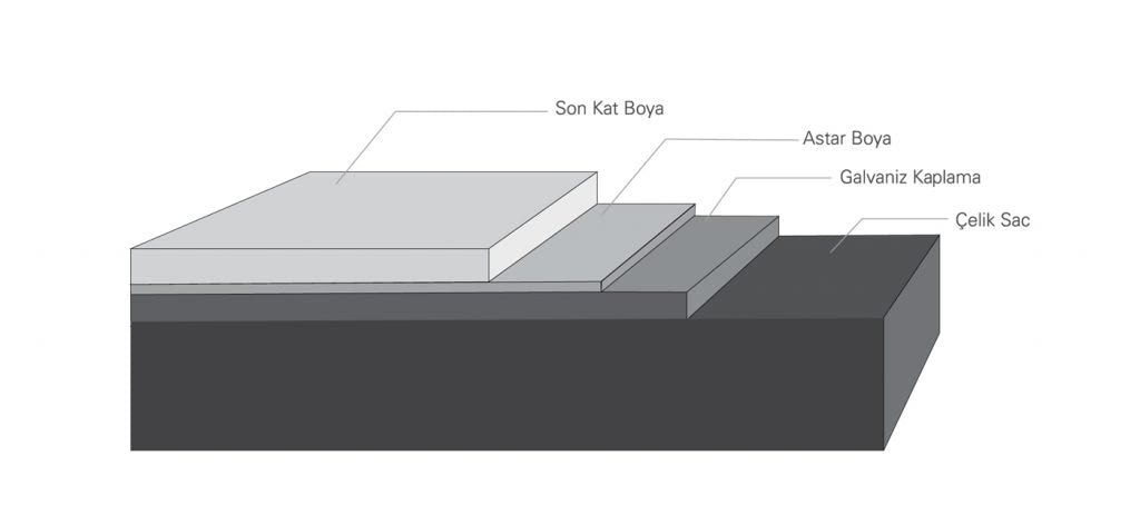 Depending on the area of use, the surface material in wall and ceiling panels can be polyester, pvc or CrNi.